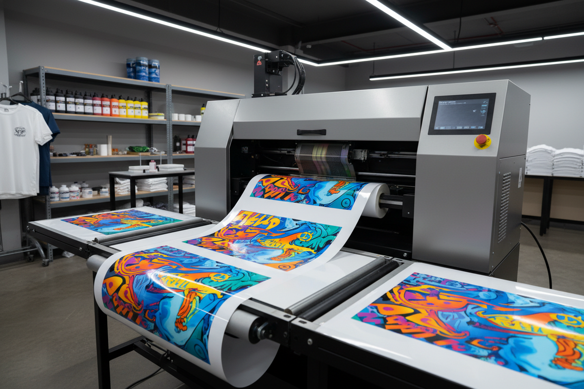 Direct to Film printing is a modern apparel decoration technique that transfers vibrant, detailed designs directly onto fabric using specialized DTF printers. The process involves printing your design onto a special film, applying adhesive powder, and then heat-pressing it onto your garment.